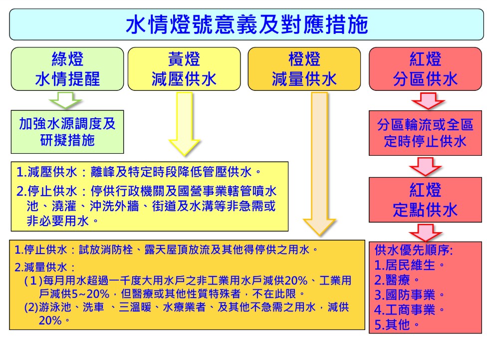 水情燈號意義及對應措施: